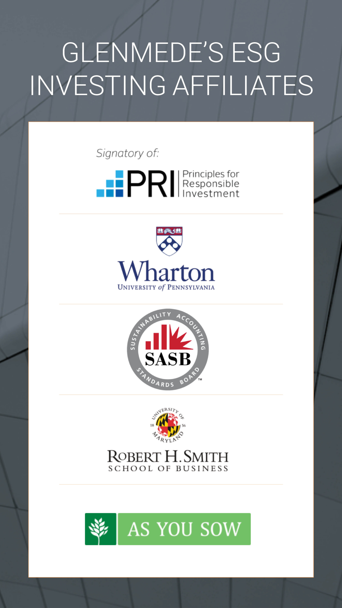 Glenmede Investment Management began managing Environmental, Social, and Governance (ESG) portfolios using a quantitative discipline based on restriction lists and positive/negative screening in 2001 and have expanded to include ESG Mandated and Thematic strategies within our Quantitative product suite. As an organization, GIM is committed to a culture of continuous improvement and this includes our approach to ESG initiatives.